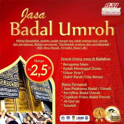 - Membayar lunas biaya badal dengan transfer atau tunai di kantor Alhijaz
